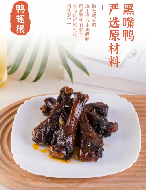 小木鴨醬板鴨目前主要提供鴨脖、鴨翅、翅中等鴨副產(chǎn)品,可以作為休閑小吃,也可以作為酒席上的下酒菜肴,開袋即食,攜帶方便,老少皆宜,冷熱可食,冷食鮮美可口,熱食醬香醇厚。除此之外,醬板鴨的營養(yǎng)價(jià)值豐富,具有活血順氣、健脾養(yǎng)胃、活血化瘀等功效,是四季養(yǎng)生保健、宴請賓朋嘗鮮、走親訪友、看望病人、孝敬長輩的首選美食佳肴。