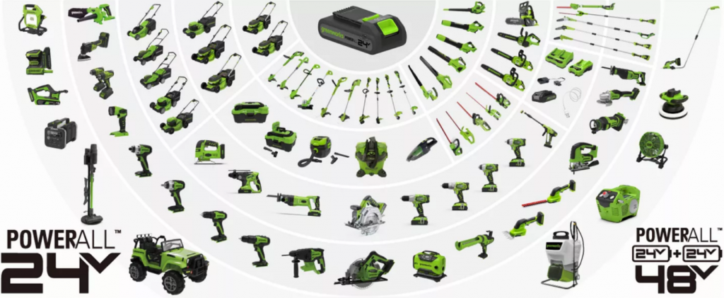 其中,24V電池包適用于所有g(shù)reenworks 24V系列工具,可以在不同工具之間無(wú)縫切換,享受自由靈活的無(wú)繩操作。兩塊greenworks 24V電池包串聯(lián)還能輸出雙倍動(dòng)力,為48V系列工具提供持久續(xù)航,為DIY用戶(hù)創(chuàng)造更好的性能和價(jià)值。