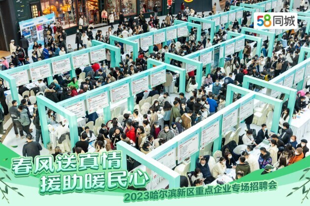3月4日13時至16時,58同城攜手黑龍江省大學(xué)生就業(yè)創(chuàng)業(yè)指導(dǎo)中心、哈爾濱新區(qū)人才工作領(lǐng) 導(dǎo)小組辦公室、哈爾濱新區(qū)民政和人力資源社會保障局、哈爾濱新區(qū)人力資源服務(wù)有限公司、哈爾濱新區(qū)職業(yè)指導(dǎo)工作室共同主辦的2023哈爾濱新區(qū)重點企業(yè)專場招聘會在哈爾濱融創(chuàng)茂一層火熱開展。
