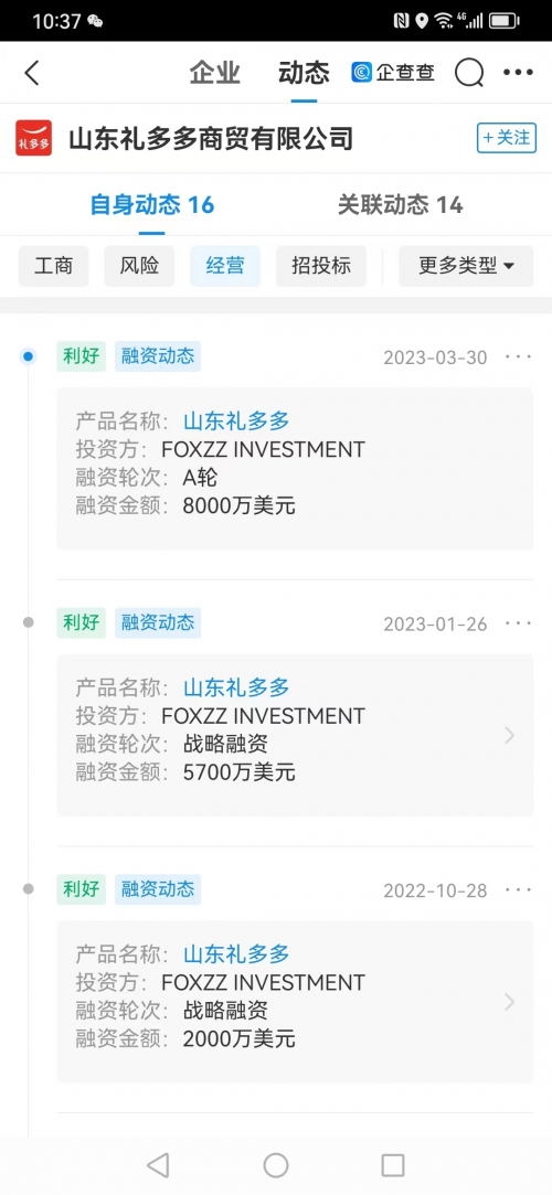 作為風(fēng)投界的領(lǐng) 軍企業(yè),F(xiàn)OXZZ INVESTMENT歷來關(guān)注創(chuàng)新型企業(yè)和有潛力的行業(yè)。而禮多多能在如此短的時間內(nèi)獲得來自FOXZZ INVESTMENT等多家風(fēng)投公司的三輪融資,可見禮多多的品牌綜合實力、市場地位及盈利能力已獲資本市場高度認(rèn)可。