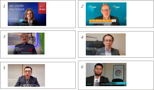 隨著海外市場對中國制造需求的逐步回歸,國內外的合作伙伴也通過云端對本次發(fā)布會表示關注。drupa展、德國機械設備制造業(yè)聯(lián)合會、印度膠印協(xié)會、香港印刷業(yè)商會、香港印藝協(xié)會、印度專業(yè)媒體Packaging & Labelling通過視頻分享了他們對于全印展的殷殷期望,并表示將繼續(xù)與全印展加深合作,繼續(xù)組織規(guī)模更大的買家團前來上海參觀。