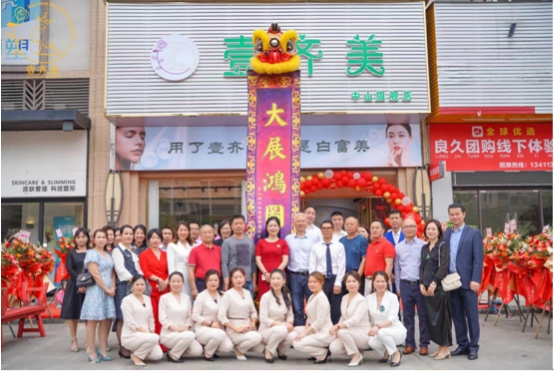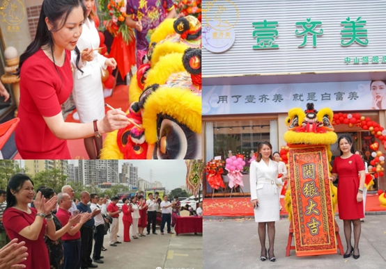 壹齊美總裁譽(yù)軒女士與坦洲旗艦店店長(zhǎng)共同揭幕,壹齊美坦洲旗艦店“開張大吉”。