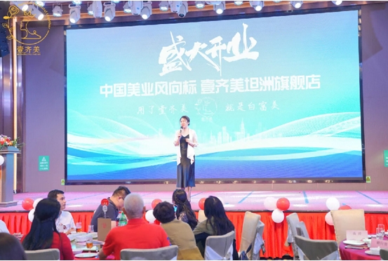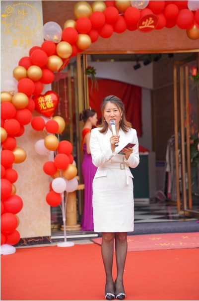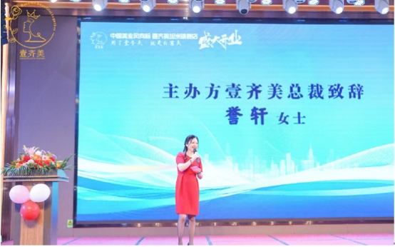 壹齊美總裁譽(yù)軒女士致辭,歡迎各界領(lǐng) 導(dǎo)、嘉賓、朋友們參加壹齊美坦洲旗艦店開業(yè)慶典。
