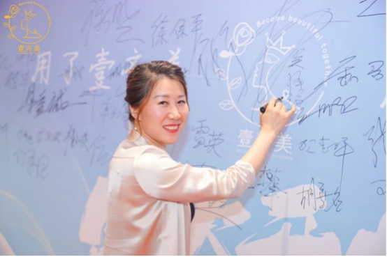 壹齊美坦洲旗艦店店長(zhǎng)吳澤艷 在壹齊美坦洲旗艦店開業(yè)晚宴簽到墻簽名留念。