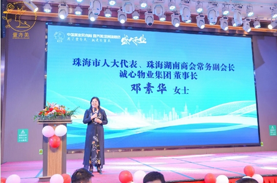 珠海湖南商會(huì)常務(wù)副會(huì)長(zhǎng)、珠海市人大代表、珠海誠(chéng)心物業(yè)集團(tuán)董事長(zhǎng)鄧素華女士 代表講話,祝賀壹齊美坦洲旗艦店開業(yè)。