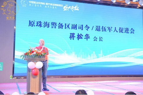 珠海警備區(qū)原副司令、珠海市退役軍人就業(yè)創(chuàng)業(yè)服務(wù)促進(jìn)會(huì) 蔣松華會(huì)長(zhǎng)致辭祝賀、祝賀壹齊美坦洲旗艦店開業(yè)。