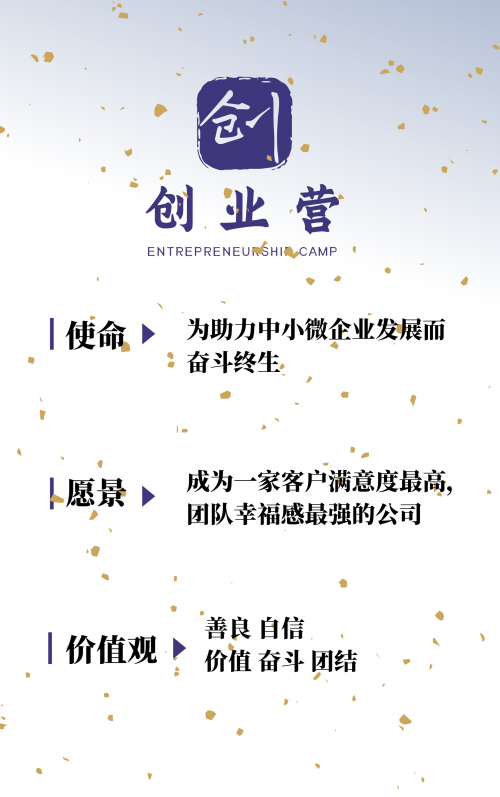 創(chuàng)業(yè)營以“為助力中小微企業(yè)發(fā)展而奮斗終生”為使命,立志此生助力中小微企業(yè)快速發(fā)展!