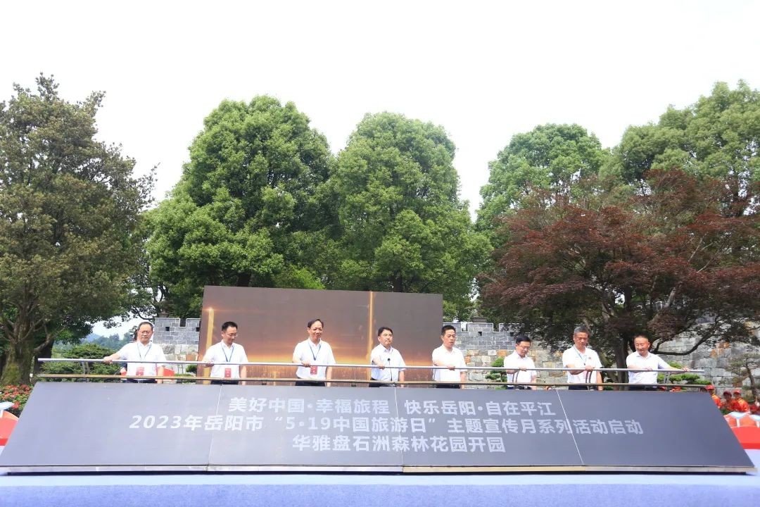 激情夏日、萬物昂揚,5月19日,美好中國·幸福旅程 2023年岳陽市“5·19中國旅游日”主題宣傳月系列活動啟動儀式暨華雅盤石洲森林花園開園儀式在平江縣華雅盤石洲森林花園隆重舉行。
