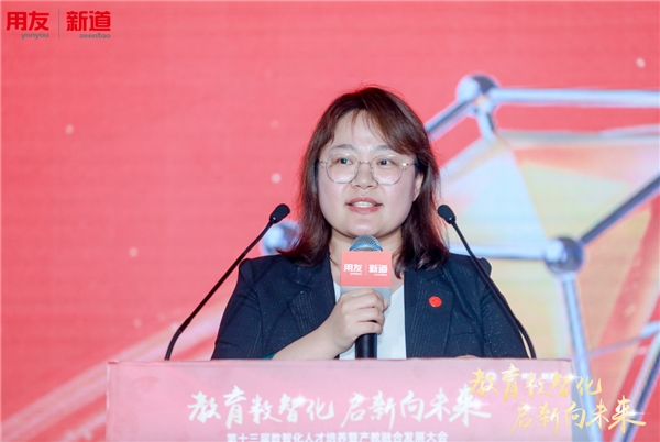 新道科技股份有限公司財經(jīng)領(lǐng)域?qū)<覐埬饶纫浴熬郛a(chǎn)業(yè)融技術(shù)、用中國管理數(shù)智化最 佳實踐成就高端技術(shù)技能人才培養(yǎng)”為主題作了演講。張娜娜指出數(shù)智技術(shù)驅(qū)動的融合創(chuàng)新是我們共同當下在做的事情,融合創(chuàng)新表現(xiàn)的特征分為:分類、分層推進;廣度、深度、跨度并重;優(yōu)化重構(gòu),強化實踐;多元協(xié)同等。張娜娜分享了數(shù)智教改的整體框架體系,將產(chǎn)業(yè)的具體行業(yè)企業(yè)需求、企業(yè)數(shù)智化實踐、企業(yè)案例數(shù)據(jù)、企業(yè)導(dǎo)師、新一代技術(shù)平臺和院校的財經(jīng)商貿(mào)大類人才需求能力畫像、資源、實踐基地、課程資源開發(fā)等共識之后融合,是基本的合作思路。新道科技打造了“六位一體”富案例生態(tài)的教學(xué)平臺,支撐案例開發(fā)、案例教學(xué)、案例大賽、案例教材、案例思政、案例研究等,助力院校數(shù)智化專業(yè)提質(zhì),以及內(nèi)涵提升,共創(chuàng)產(chǎn)教融合新形態(tài)。
