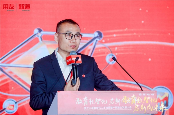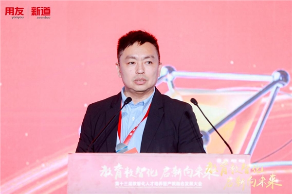 新道科技股份有限公司AIE事業(yè)部副總經(jīng)理、高級專家陶磊以“數(shù)字化、行業(yè)化、特色化商科綜合實驗室建設(shè)方案”進行主題演講。陶磊表示,學(xué)校在人才培養(yǎng)過程當中遇到了很多痛點:缺少產(chǎn)業(yè)資源、缺少數(shù)智化技術(shù)、缺少產(chǎn)業(yè)特色、缺少交叉融合、缺少數(shù)智化場景。他提出通過“三新”方式解決,一是數(shù)智技術(shù)融入學(xué)校教學(xué)內(nèi)容、場景,二是數(shù)智化企業(yè)運營場景、流程植入到學(xué)校實踐內(nèi)容、實踐平臺中,三是不同行業(yè)、不同領(lǐng)域的案例、數(shù)據(jù)融入到學(xué)校教學(xué)中,使教學(xué)內(nèi)容富有趣味性。新道AIE數(shù)智商業(yè)綜合實踐平臺基于用友YonBIP平臺,涉及數(shù)智化企業(yè)的經(jīng)營管控全流程,結(jié)合當?shù)禺a(chǎn)業(yè)或者學(xué)校特色專業(yè)的行業(yè)進行定制行業(yè)化案例和數(shù)據(jù),打造學(xué)校特色,支撐跨專業(yè)、專業(yè)群的建設(shè),以及虛仿基地建設(shè),訓(xùn)練學(xué)生對專業(yè)能力和綜合能力的綜合運用。