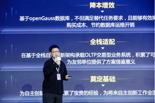 商業(yè)落地是開(kāi)源項(xiàng)目前進(jìn)的驅(qū)動(dòng)力,大會(huì)邀請(qǐng)了10家重量級(jí)客戶及合作伙伴分享基于 openGauss 的創(chuàng)新成果。云和恩墨北區(qū)行業(yè)架構(gòu)部副總經(jīng)理江寧聯(lián)合民生銀行數(shù)據(jù)庫(kù)專家孔再華在主論壇發(fā)表了題為《奮楫篤行,臻于至善 - 民生銀行自主創(chuàng)新數(shù)據(jù)庫(kù)能力構(gòu)建》的演講??自偃A首先談到,在自主創(chuàng)新的探索中,各行業(yè)普遍面臨著一些問(wèn)題,如遷移前的數(shù)據(jù)庫(kù)選型復(fù)雜,數(shù)據(jù)庫(kù)種類、架構(gòu)、路線多;遷移過(guò)程艱辛,任務(wù)重工期緊,不確定性多,難以把控;遷移后又面臨管理雜亂,新數(shù)據(jù)運(yùn)維體系建設(shè)和多種異構(gòu)數(shù)據(jù)庫(kù)同時(shí)管理的訴求。這就需要不止對(duì)數(shù)據(jù)庫(kù)產(chǎn)品的技術(shù)考量,同時(shí)還要兼顧實(shí)現(xiàn)工期、成本與質(zhì)量。面對(duì)這些問(wèn)題,民生銀行選擇通過(guò) openGauss 社區(qū)的力量共同合作,其中云和恩墨為民生銀行提供了全生命周期的遷移工具套件和服務(wù)支持。