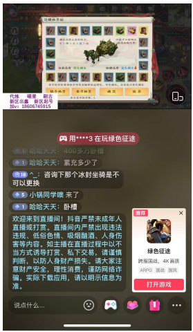 直播產(chǎn)品:《綠色征途》,快速同步上線50個(gè)主播,每周進(jìn)行淘汰,留下優(yōu)秀主播,通過以往經(jīng)驗(yàn)快速起號(hào),穩(wěn)定直播間流量及人群屬性,首月充值投入即回正。