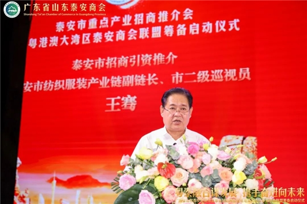 泰安市紡織服裝產業(yè)鏈副鏈長、市二級巡視員王騫同志作招商引資推介