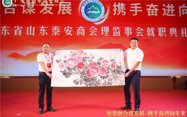 廣東省山東商會向廣東省山東泰安商會贈送賀禮