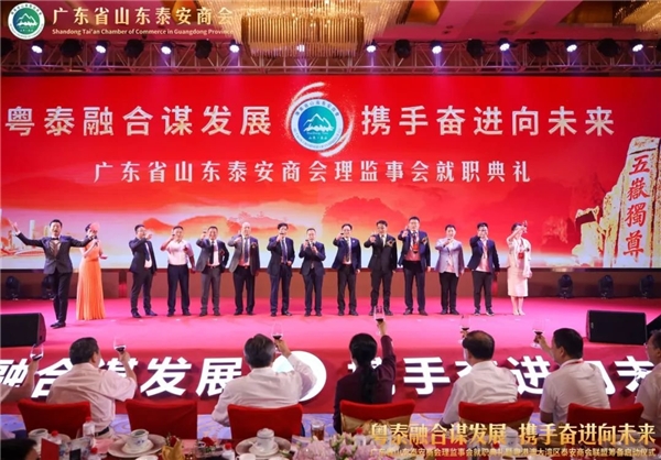 秦亮會長表示,我們全體會員將發(fā)揚新時代“泰山石敢當?shù)木瘛?、“泰山挑山工精神?敢于擔當、勇于負責、埋頭苦干、永不懈怠,為實現(xiàn)今天典禮的主題:“粵泰融合謀發(fā)展, 攜手奮進向未來”而努力奮斗。首長、領 導各位嘉賓,我們一定能行穩(wěn)致遠,進而有為,不辜負廣東和泰安兩地領 導及所有關心支持泰安商會發(fā)展的親朋好友的期望,為兩個家鄉(xiāng)高質量發(fā)展,貢獻我們的力量,體現(xiàn)新時代泰商的社會擔當。