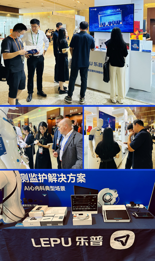 會(huì)議現(xiàn)場,樂普云智帶來全方位人工智能心電解決方案、AI穿戴式遙測監(jiān)護(hù)解決方案及智能化醫(yī)療產(chǎn)品展示,吸引眾多與會(huì)者參觀交流。其中,樂普云智心臟實(shí)時(shí)監(jiān)護(hù)預(yù)警機(jī)心安寶、平板便攜式心電圖機(jī)NeoECG系列、無線多參數(shù)監(jiān)測儀M12、動(dòng)態(tài)血壓監(jiān)測儀KM-7020、 心臟健康手表W20等明星醫(yī)療產(chǎn)品獲在場嘉賓高度關(guān)注!