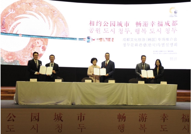 成都市文化廣電旅游局與大邱廣域市文化體育觀光局、成都傳媒集團成都國際傳媒有限公司與韓國新傳媒集團、成都傳媒集團成都新聞國際旅行社有限公司與韓國模德旅游集團分別簽訂了合作協(xié)議。本次簽約將持續(xù)加強兩市在文旅資源、旅游博覽會、旅游宣傳以及文化交流方面的合作。來自成都和韓國的傳媒集團將會進一步加強在文化傳媒以及東亞文化之都方面的交流合作,后續(xù)擬在韓國設立成都文化旅游推廣中心,在線上漫畫、電影、電視劇、綜藝節(jié)目等娛樂方面的內容創(chuàng)作、傳播中,加強文化旅游領域的宣傳推廣合作。