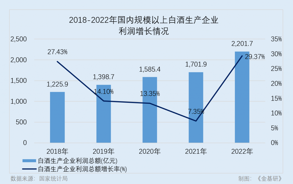 從規(guī)模以上白酒生產企業(yè)的銷售收入和利潤情況來看,2018-2022年,國內白酒產業(yè)的需求量或正持續(xù)增長,這或離不開國內白酒企業(yè)的高質量發(fā)展。