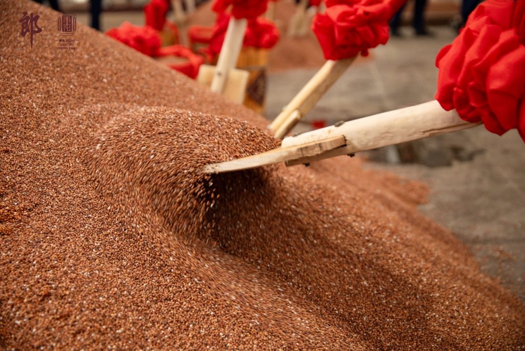 在釀造工藝上,青花郎嚴守“12987”釀造技藝,遵循“端午制曲、重陽下沙”的天時。每一粒青花郎原料郎糯紅19號都要歷經一年一個周期、兩次投糧、九次蒸煮,八次發(fā)酵、七次取酒,才能蛻變?yōu)樵骗倽{。