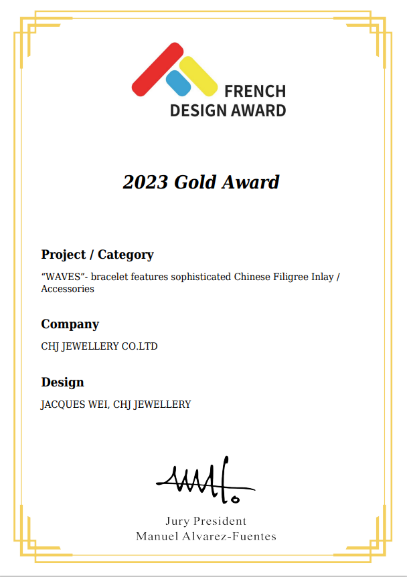 前不久,全球設(shè)計(jì)領(lǐng)域最具影響力的獎(jiǎng)項(xiàng)“法國(guó)設(shè)計(jì)獎(jiǎng)(FDA)”、“美國(guó)繆斯設(shè)計(jì)獎(jiǎng)(MUSE)”于近期公布2023年獲獎(jiǎng)榜單,潮宏基與設(shè)計(jì)師Jacques Wei聯(lián)名WAVES浪潮系列花絲手鐲經(jīng)過(guò)重重遴選,于全球眾多參賽作品中脫穎而出,接連在兩項(xiàng)國(guó)際設(shè)計(jì)獎(jiǎng)項(xiàng)評(píng)選中斬獲金獎(jiǎng),讓更多人認(rèn)識(shí)到非遺花絲工藝。