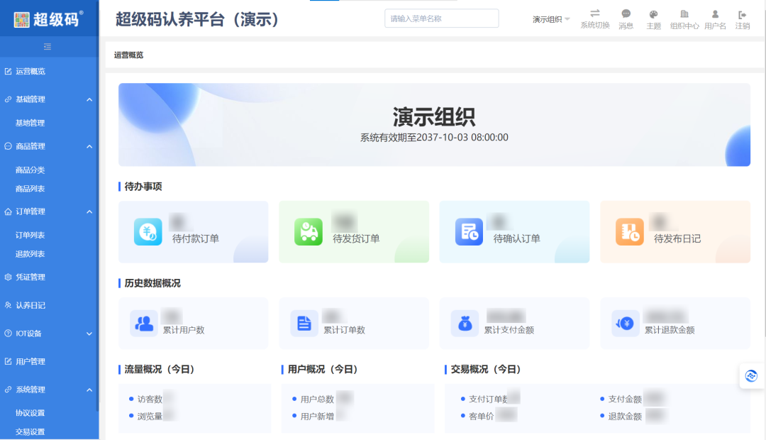 面向管理者:認(rèn)養(yǎng)SaaS云平臺。管理者可通過認(rèn)養(yǎng)SaaS云平臺進(jìn)行認(rèn)養(yǎng)基地管理、商品管理、憑證管理、用戶交易管理、認(rèn)養(yǎng)日記管理、物聯(lián)網(wǎng)IOT設(shè)備管理等。根據(jù)時(shí)令,合理安排農(nóng)產(chǎn)品上下架,查看系統(tǒng)訂單及用戶交易情況,維護(hù)并定時(shí)推送農(nóng)事操作、生產(chǎn)記錄、設(shè)備監(jiān)測報(bào)告等記錄,適時(shí)安排發(fā)貨。