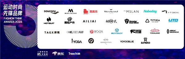 Saucony索康尼、MAIAACTIVE瑪婭、SCALER思凱樂、JORYAweekend、MSLAN、Nobaday、彳亍CHICHU、HOTSUIT后秀、TECTOP探拓、AILIAI艾力艾、初弎、MonsterGuardians、TITIKA、UTO悠途、TAGX探觀、ONEMIX玩覓、BOGA、MOTOBOY、風(fēng)謎FOOXMET、優(yōu)卡蓮YOKALAND、AIRBUM、IYOGA艾瑜嘉、LIFEMORE、脊索、yoyooblue、XAVIER3澤維爾,共26個(gè)品牌榮獲FASHIONTHINKAWARDS2023運(yùn)動(dòng)時(shí)尚先鋒品牌獎(jiǎng)項(xiàng)。