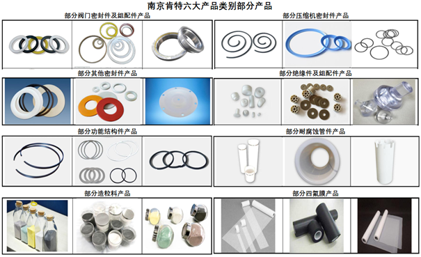 根據(jù)客戶需求,肯特股份逐漸調(diào)整、豐富生產(chǎn)鏈,目前已形成以密封件及組配件、絕緣件及組配件、功能結(jié)構(gòu)件、耐腐蝕管件、造粒料和四氟膜為主的六大產(chǎn)品類別,約3萬余種不同規(guī)格、型號(hào)的產(chǎn)品,產(chǎn)品覆蓋面廣。