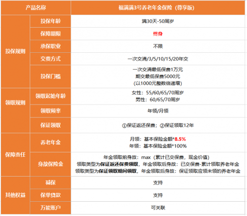 市面上有些養(yǎng)老年金險(xiǎn)是保障定期的,但是福滿滿3號(hào)養(yǎng)老年金險(xiǎn)尊享版的保障期限是保至終身,開(kāi)始領(lǐng)取養(yǎng)老年金后,養(yǎng)老金活到老領(lǐng)到老,真正做到給養(yǎng)老生活全方位的保障。