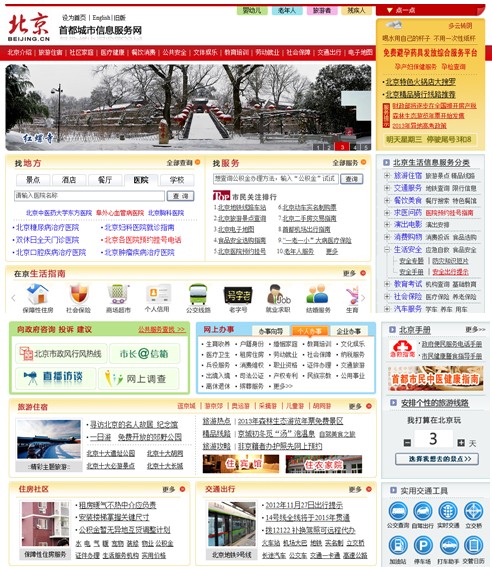 ?。?)服務(wù)事項(xiàng)深度整合,服務(wù)方式高效、便捷,且與時(shí)俱進(jìn)體現(xiàn)當(dāng)下社會(huì)問(wèn)題。提供的公共服務(wù)整合度高,各類服務(wù)囊括了所有該服務(wù)下應(yīng)提供的服務(wù)類別。如交通出行方面,提供了公交換乘、地鐵換乘信息與服務(wù)查詢,另提供了汽車、機(jī)票、“一卡通”代售點(diǎn)、高速公路通行費(fèi)、停車場(chǎng)、加油站、汽車4S店、打車費(fèi)用、車輛管理所信息等各類查詢服務(wù),且人性化地提供了出行提示、交通管理日歷、立交橋走法、復(fù)雜路口走法等細(xì)節(jié)服務(wù)。生活類的吃、穿、住、行、游各類服務(wù)的延伸服務(wù)細(xì)致、具體。如在京生活指南為外來(lái)人口迅速適應(yīng)首都生活提供了便捷高效的服務(wù)窗口,以老字號(hào)美食為例,不僅提供了各類北京城的老字號(hào)介紹信息,同時(shí)搭配提供了交通線路查詢、美食餐館方位圖、餐廳推薦信息等,全方位、多角度地為服務(wù)公眾著想,以最快捷、最高效的方式滿足公眾所有服務(wù)需求。網(wǎng)站提供特色服務(wù)體現(xiàn)了北京城的人文特色與地域特色,如“車主秘書(shū)”、“首都市民中醫(yī)健康指南”、“北京傳統(tǒng)特色小吃”等。另提供的創(chuàng)新服務(wù)在一定程度上體現(xiàn)了首都社會(huì)問(wèn)題,以引領(lǐng)公眾健康生活方式為主旨,如食品合格性查詢服務(wù)、北京市免費(fèi)避孕藥具發(fā)放綜合服務(wù)平臺(tái)。
