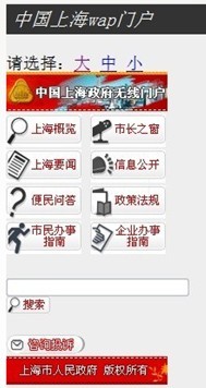?。?)率先全國政府網(wǎng)站提出建設(shè)"政府無線門戶"的目標(biāo)。2008年2月,當(dāng)大多數(shù)政府網(wǎng)站局限于以手機短信發(fā)通知作為輔助應(yīng)用的時候,"中國上海"門戶網(wǎng)站率先全國政府網(wǎng)站提出建設(shè)"政府無線門戶"的目標(biāo)。市民通過手機、PDA等無線通訊終端,就可以便捷地訪問網(wǎng)站。