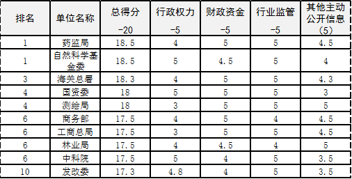 會(huì)上,國(guó)脈互聯(lián)副總經(jīng)理、資深咨詢(xún)師俞萍代表評(píng)估委員會(huì)對(duì)"2016年中國(guó)政府網(wǎng)站績(jī)效評(píng)估活動(dòng)"進(jìn)行了詳細(xì)介紹,并宣布了2016年全國(guó)各級(jí)政府透明度領(lǐng)先單位,其中,部委政府透明度得分排名前10名如下表所示: