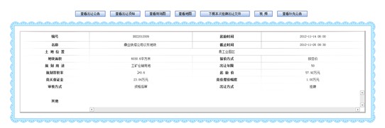網(wǎng)站設(shè)立了“江西省土地使用權(quán)和礦業(yè)權(quán)網(wǎng)上交易系統(tǒng)”欄目,欄目設(shè)有“土地交易”、“采礦權(quán)交易”、“探礦權(quán)交易”及“結(jié)果公示”子欄目,為土地交易、采礦權(quán)交易、探礦權(quán)交易提供了網(wǎng)上拍賣交易平臺,使得有需要進行土地、礦業(yè)交易的公眾足不出戶實現(xiàn)該類事物的辦事服務(wù)。如在“土地交易”下提供了江西省所有掛牌交易的土地類型,并一目了然的排列出土地的國有建設(shè)用地使用權(quán)編號、出讓類型、掛牌起始時間、掛牌截止時間、保證金到賬截止時間,并在時間后面提供了保證金、起始價、最高報價。且點擊“查看信息”可查看該交易土地的詳情,如土地名稱、規(guī)劃用途、規(guī)劃容積率等。另提供有按區(qū)域搜索以及按照“公告中”、“掛牌”、“拍賣”、“交易成功”等狀態(tài)搜索所有掛牌拍賣的土地信息,方便公眾快速定位所需了解的不同區(qū)域、類型土地拍賣信息。用戶只要通過注冊即可在網(wǎng)上參與進行土地拍賣的其他環(huán)節(jié)操作。
