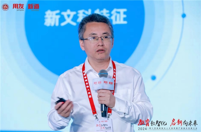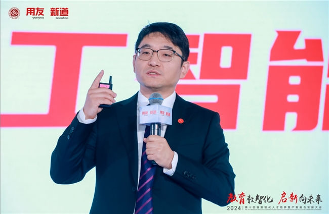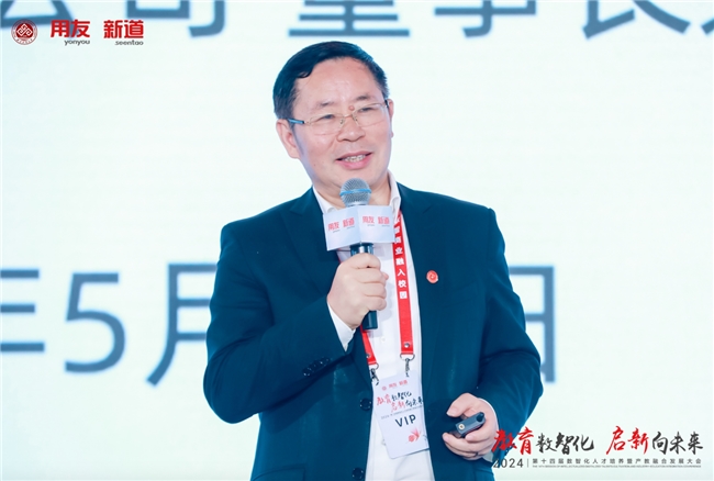 新道科技股份有限公司副總裁賈大明以“教育數(shù)智化 啟新向未來(lái)—新質(zhì)生產(chǎn)力時(shí)代下的產(chǎn)教融合新基建”為題作主題演講。他表示,發(fā)展數(shù)字經(jīng)濟(jì)就是發(fā)展新質(zhì)生產(chǎn)力,數(shù)智人才就是新質(zhì)人才,新質(zhì)人才特征是更懂硬科技、更懂?dāng)?shù)據(jù)、更懂產(chǎn)業(yè),培養(yǎng)新質(zhì)人才要圍繞能力構(gòu)建產(chǎn)教融合、運(yùn)用科技構(gòu)建產(chǎn)教融合。賈大明介紹,新道科技以產(chǎn)業(yè)態(tài)勢(shì)感知平臺(tái),聚焦人才供需適配;以產(chǎn)業(yè)鏈認(rèn)知平臺(tái),構(gòu)建產(chǎn)業(yè)全局思維;以企業(yè)認(rèn)知實(shí)踐平臺(tái),構(gòu)建企業(yè)全局思維;以商科專(zhuān)業(yè)創(chuàng)新平臺(tái),構(gòu)建場(chǎng)景+、科技+、數(shù)據(jù)+;以工科專(zhuān)業(yè)創(chuàng)新平臺(tái),構(gòu)建場(chǎng)景+、科技+、裝備+;以跨專(zhuān)業(yè)綜合實(shí)踐平臺(tái),聚焦學(xué)科交叉綜訓(xùn);以能力訓(xùn)賽平臺(tái),聚焦能力鑒定與競(jìng)技;以數(shù)智科研平臺(tái),助力教師科研創(chuàng)新;以產(chǎn)教融合大腦,聚焦產(chǎn)教資源平衡。賈大明表示,新道科技是產(chǎn)教融合戰(zhàn)略伙伴,能構(gòu)建用友生態(tài)全流程、多形態(tài)的閉環(huán)合作;是產(chǎn)教融合最佳伙伴,通產(chǎn)業(yè)、懂教育、富科技、有情懷;是產(chǎn)教融合務(wù)實(shí)伙伴和未來(lái)伙伴,圍繞人才培養(yǎng)的基本面開(kāi)展落地行動(dòng)。