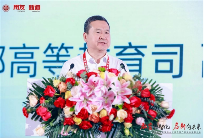 新道科技股份有限公司總裁田鵬在致辭中介紹,新道科技一直堅(jiān)守初心,堅(jiān)持產(chǎn)教融合和科教融匯,逐步形成了基于產(chǎn)業(yè)最佳實(shí)踐、融合教育數(shù)字化技術(shù),以培養(yǎng)創(chuàng)新復(fù)合型數(shù)智化人才為主的產(chǎn)教融合模式。目前,新道科技已經(jīng)累計(jì)服務(wù)超5600所院校及社會(huì)培訓(xùn)機(jī)構(gòu),共建各類(lèi)實(shí)驗(yàn)室、實(shí)踐基地近萬(wàn)家,共建產(chǎn)業(yè)學(xué)院473所,聯(lián)合培養(yǎng)學(xué)生超740萬(wàn)人。他表示,站在人工智能時(shí)代的新起點(diǎn),用友集團(tuán)與新道科技,會(huì)繼續(xù)在產(chǎn)業(yè)與教育間,搭建起全流程、多形態(tài)、厚科技的閉環(huán)深度融合模式;持續(xù)供給教育所需的產(chǎn)業(yè)資源、新技術(shù)和優(yōu)質(zhì)服務(wù);持續(xù)供給產(chǎn)業(yè)所急需的拔尖創(chuàng)新型人才與應(yīng)用復(fù)合型人才;持續(xù)發(fā)展教育科技,賦能產(chǎn)教融合的高質(zhì)量發(fā)展。