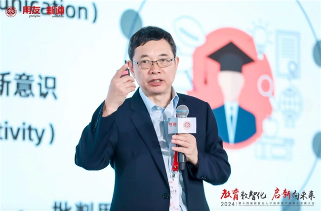 武漢理工大學(xué)校長(zhǎng)楊宗凱在會(huì)上聚焦“數(shù)智賦能 產(chǎn)教融合 構(gòu)建更加開(kāi)放的人才培養(yǎng)體系”進(jìn)行主旨報(bào)告。他首先分析了高等教育創(chuàng)新面臨的新形勢(shì),分享了世界高等教育大會(huì)提出七大行動(dòng)路徑和我國(guó)高等教育數(shù)字化十余年發(fā)展歷程。隨后,楊宗凱介紹了武漢理工大學(xué)創(chuàng)新育人方式:構(gòu)建連接、開(kāi)放、精準(zhǔn)化的教學(xué)環(huán)境,積極探索構(gòu)建“五雙”育人模式,積極推動(dòng)實(shí)現(xiàn)校際協(xié)同共享,人工智能技術(shù)融入傳統(tǒng)學(xué)科的學(xué)習(xí)內(nèi)容;變革辦學(xué)模式:數(shù)字賦能無(wú)邊界學(xué)習(xí)、深化校地合作,建設(shè)未來(lái)學(xué)習(xí)中心、打造校企產(chǎn)教融合實(shí)踐平臺(tái),數(shù)字賦能科教結(jié)合培養(yǎng)拔尖創(chuàng)新人才,領(lǐng)導(dǎo)駕駛艙賦能扁平化精準(zhǔn)化管理;發(fā)揮引領(lǐng)示范:與企業(yè)共同打造“AI+教育”標(biāo)桿應(yīng)用場(chǎng)景,首次實(shí)現(xiàn)無(wú)擾式、不進(jìn)校本科審核評(píng)估,召開(kāi)全國(guó)教育數(shù)字化現(xiàn)場(chǎng)推進(jìn)會(huì);著眼未來(lái):建設(shè)元宇宙大學(xué)等數(shù)字化戰(zhàn)略全面賦能高質(zhì)量發(fā)展的舉措。他表示,數(shù)字化一定要有“企業(yè)+平臺(tái)”,并與高等教育緊密聯(lián)系,推動(dòng)教學(xué)改革和創(chuàng)新。
