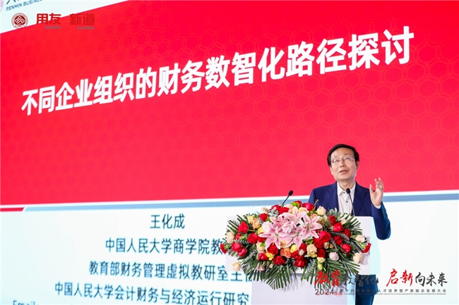 中國(guó)人民大學(xué)商學(xué)院教授、全國(guó)會(huì)計(jì)專(zhuān)業(yè)學(xué)位研究生教育指導(dǎo)委員會(huì)副主任王化成以“不同企業(yè)組織的財(cái)務(wù)數(shù)智化路徑探討”為題聚焦企業(yè)進(jìn)化過(guò)程的點(diǎn)線(xiàn)面網(wǎng)、價(jià)值網(wǎng)平臺(tái)的財(cái)務(wù)數(shù)智化、大企業(yè)集團(tuán)的財(cái)務(wù)數(shù)智化、中小型企業(yè)的財(cái)務(wù)數(shù)智化四個(gè)方面進(jìn)行演講。王化成表示,不同的企業(yè)組織形式,演化出不同的戰(zhàn)略和商業(yè)模式,也產(chǎn)生了不同的財(cái)務(wù)管理,正確理解企業(yè)組織的演進(jìn)和發(fā)展,是探索會(huì)計(jì)、審計(jì)和財(cái)務(wù)發(fā)展脈絡(luò)的根基,也是預(yù)測(cè)未來(lái)發(fā)展方向的出發(fā)點(diǎn)。他指出,平臺(tái)型組織可以概括為在線(xiàn)化、數(shù)據(jù)化、智能化、業(yè)財(cái)融合。從世界范圍內(nèi)來(lái)看,價(jià)值網(wǎng)平臺(tái)型組織已經(jīng)率先實(shí)現(xiàn)了數(shù)智化轉(zhuǎn)型和業(yè)財(cái)融合。隨后,他以開(kāi)灤集團(tuán)為例詳細(xì)介紹了大企業(yè)集團(tuán)的財(cái)務(wù)數(shù)智化過(guò)程和內(nèi)容。