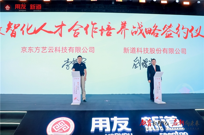 2024年,新道科技將與院校持續(xù)深化產(chǎn)教融合,共推教育高質(zhì)量發(fā)展。會(huì)議期間,新道科技與多家院校舉行校企合作戰(zhàn)略簽約儀式。同時(shí),新道科技與京東方藝云科技有限公司舉行戰(zhàn)略簽約儀式,雙方將充分發(fā)揮各自?xún)?yōu)勢(shì),深化產(chǎn)教融合,構(gòu)建校企協(xié)同育人新格局。
