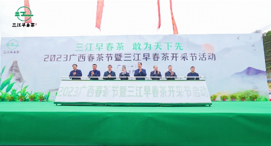 春潮涌動(dòng),萬(wàn)象更新。2月9日,以“三江早春茶·敢為天下先”為主題的2023廣西春茶節(jié)暨三江早春茶開(kāi)采節(jié)活動(dòng)在三江縣馬灣茶園、布央茶園隆重舉行。當(dāng)天上午,一首歡快的采茶舞表演充分展現(xiàn)了茶農(nóng)們豐收的喜悅,也拉開(kāi)了此次開(kāi)采節(jié)的帷幕。三江的茶農(nóng)和來(lái)自各地的經(jīng)銷(xiāo)商們齊聚一堂,借一聲“開(kāi)茶”喚醒春山綠意,祈愿新年新氣象。