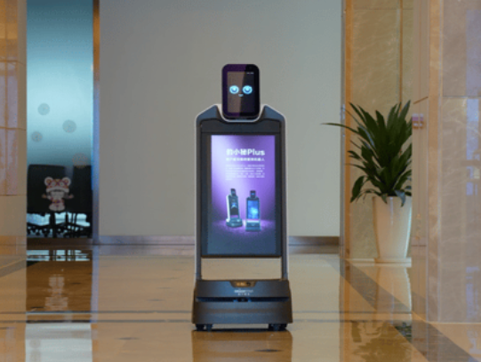 在商場(chǎng)、寫字樓里,豹小秘Plus是亮眼的品牌宣傳大使。它游走在樓道里,27英寸的超清大屏可以清晰地展示美圖、抖音、快手等各類視頻和多種廣告形式。在識(shí)別到顧客時(shí),豹小秘Plus還能主動(dòng)上前招攬客人,幫助商家隨時(shí)隨地進(jìn)行動(dòng)態(tài)宣傳。