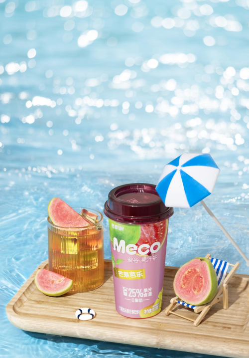 在洞察年輕消費(fèi)者喜好方面,Meco蜜谷一直頗有心得。此次上新的芒果芭樂果汁茶,就是品牌以時(shí)下街飲店大熱的兩款口味:芒果、芭樂為靈感,以≥25的純正果汁+優(yōu)質(zhì)原茶現(xiàn)萃精制而成??诟胸S富的同時(shí),Meco蜜谷果汁茶還采用0脂健康配方和進(jìn)口工藝保障品質(zhì),讓消費(fèi)者在肆意享受美味的同時(shí),喝得更安心。