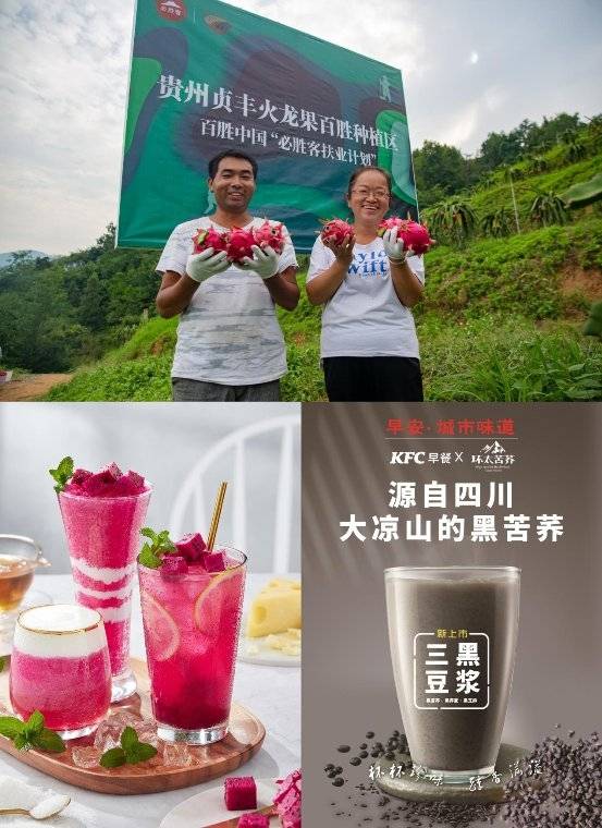除了關(guān)注兒童,百勝中國(guó)還在鄉(xiāng)村振興領(lǐng)域積極推行“扶業(yè)計(jì)劃”:通過充分發(fā)揮自身在供應(yīng)鏈管理和產(chǎn)品研發(fā)上的優(yōu)勢(shì),對(duì)偏遠(yuǎn)地區(qū)農(nóng)產(chǎn)業(yè)提供培訓(xùn)、生產(chǎn)、采購(gòu)、研發(fā)到再培訓(xùn)的閉環(huán)支持,在助力農(nóng)民創(chuàng)收的同時(shí),將優(yōu)質(zhì)農(nóng)產(chǎn)品研制成美食搬上肯德基、必勝客等品牌餐桌供消費(fèi)者享用,形成健康良性的產(chǎn)業(yè)鏈循環(huán)。從云南松露制成的必勝客“松露比薩”,到貴州火龍果制成的必勝客“紅心火龍果沙冰”,再到四川涼山黑苦蕎制成的肯德基“三黑豆?jié){”等,“扶業(yè)計(jì)劃”所覆蓋的地區(qū)范圍逐年擴(kuò)大,不同地區(qū)的風(fēng)味美食也得到了充分挖掘和創(chuàng)新。