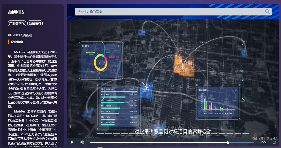由國(guó)家發(fā)展和改革委員會(huì)、工業(yè)和信息化部、國(guó)家互聯(lián)網(wǎng)信息辦公室、貴州省人民政 府共同主辦,以“數(shù)實(shí)相融 算啟未來(lái)”為主題的2023中國(guó)國(guó)際大數(shù)據(jù)產(chǎn)業(yè)博覽會(huì)于貴州省貴陽(yáng)市落下帷幕。作為數(shù)博會(huì)的“老面孔”,本次展會(huì)MobTech袤博科技攜MobTech城市商業(yè)大數(shù)據(jù)智圖SaaS平臺(tái)、LeadsUnlimited袤博商機(jī)情報(bào)管理平臺(tái)等多款前沿?cái)?shù)智化產(chǎn)品亮相云網(wǎng)展會(huì),與騰訊、京東、華為、百度等知名企業(yè)一起,共探數(shù)字經(jīng)濟(jì)發(fā)展新機(jī)遇。