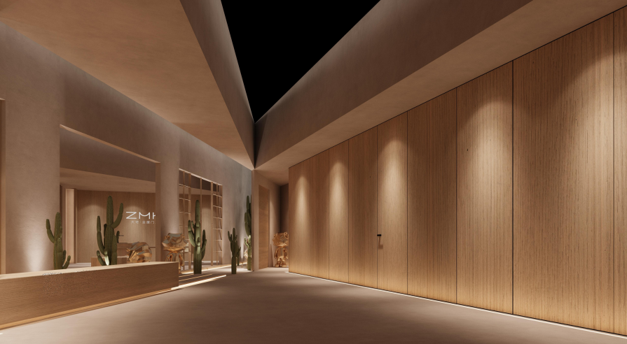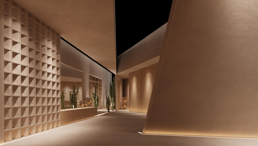 除了在加盟扶持方面帶來驚喜外,展會(huì)現(xiàn)場(chǎng),ZMKM將以“沙漠綠洲”為展會(huì)主題,以土黃、綠、木色為主要色調(diào),利用沙子、仙人掌、木紋護(hù)墻、木紋產(chǎn)品、斑駁的藝術(shù)、漆肌理、定制紋理地板、偏暖的燈光、定制數(shù)碼打印板等元素設(shè)計(jì),弱化行業(yè)屬性讓空間給參觀者帶來思考,進(jìn)而成為品牌跳圈的形象和載體,成功將ZMKM全屋門系統(tǒng)展示,讓觀展用戶便于住家式體驗(yàn)極簡(jiǎn)門的設(shè)計(jì)、安全等優(yōu)勢(shì)。