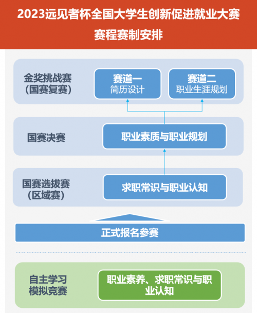 為了更好的促進(jìn)就業(yè),更好發(fā)揮遠(yuǎn)見者杯“以賽促學(xué)”的作用,幫助大學(xué)生了解求職就業(yè)中的現(xiàn)實(shí)情況,通過學(xué)習(xí)和競賽找到適合自己的職業(yè)發(fā)展定位和路徑。大賽增加了賽前培訓(xùn)輔導(dǎo)和模擬競賽。賽前培訓(xùn)輔導(dǎo)以視頻公開課形式作為學(xué)習(xí)資料,供參賽選手了解比賽宗旨目的、賽程組織安排、全國總決賽等常規(guī)賽的內(nèi)容范圍、金獎(jiǎng)挑戰(zhàn)賽評分準(zhǔn)則以及“一票否決”等重要內(nèi)容。模擬競賽定 位于幫助參賽選手了解“遠(yuǎn)見者杯”的競賽范圍、題型設(shè)置等內(nèi)容。