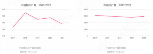 從供給端來看,中國新疆棉區(qū)、黃河流域棉區(qū)和長江流域棉區(qū)每年棉花產(chǎn)量穩(wěn)定在560萬噸以上,中國紗產(chǎn)量也穩(wěn)定在2000萬噸以上,所以中國服裝主要原材料供給相對平穩(wěn)和密集,天然的產(chǎn)業(yè)優(yōu)勢顯著。