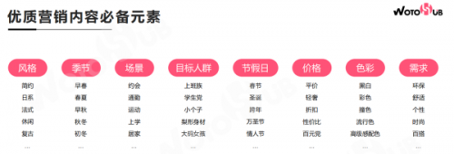 而優(yōu)質的服裝營銷內容也必須具備風格、季節(jié)、場景、目標人群、節(jié)假日、價格、色彩、功能等元素。但過多的元素堆砌,會導致內容離散不聚焦。一般而言,短視頻一般可選擇2-4個元素著重分享,讓服裝產(chǎn)品部分特征突出顯示,快速觸達到消費者。對于當下海外服裝種草內容,報告也總結了好物測評類、時尚搭配類、材料干貨類、時尚新娛樂四大類熱門玩法,讓營銷直擊人心。