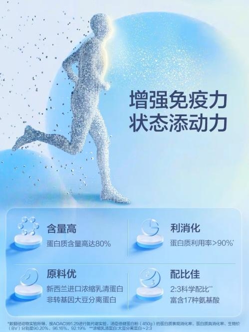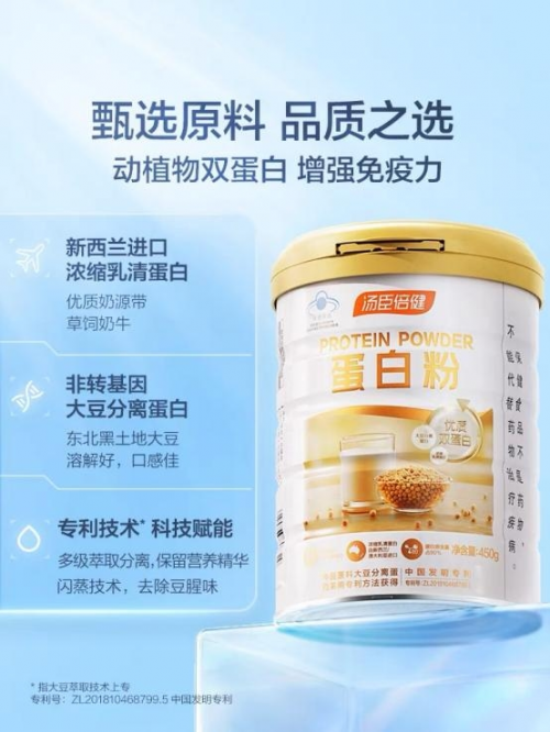 湯臣倍健蛋白粉是湯臣倍健的明星產(chǎn)品。作為全球膳食營養(yǎng)補(bǔ)充劑行業(yè)領(lǐng) 先企業(yè),湯臣倍健不僅在原料上下足功夫,甄選非轉(zhuǎn)基因大豆分離蛋白和新西蘭進(jìn)口濃縮乳清蛋白,在工藝上也近乎苛刻,采用動植物雙蛋白科學(xué)配方,雙重營養(yǎng)幫助人體補(bǔ)充優(yōu)質(zhì)蛋白質(zhì),科學(xué)增強(qiáng)免疫力。湯臣倍健蛋白粉營養(yǎng)豐富且均衡,比單一蛋白更符合人體營養(yǎng)需求。經(jīng)動物實驗表明,湯臣倍健蛋白粉蛋白含量達(dá)80%,消化率可達(dá)90%以上,更有助于人體吸收。
