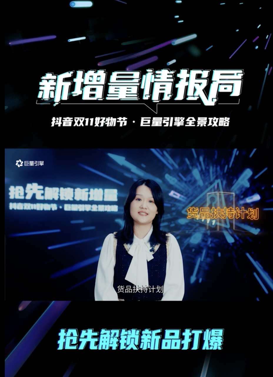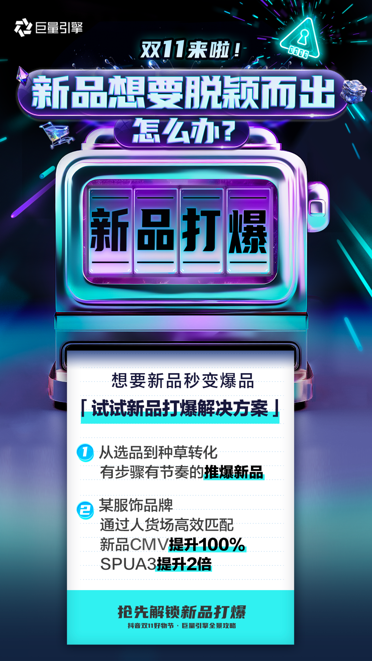 無論是傳統(tǒng)商業(yè)還是現(xiàn)代電商,貨品永遠是商業(yè)的核心要素之一,是品牌短期營收和長效發(fā)展的主要勢能。對待「貨品」的發(fā)力點,重在高效的新品發(fā)布舉措與爆款的打造兩方面。許多品牌可能會覺得,爆品的出現(xiàn)是偶然的,新品成爆品更是難上加難。從路徑來看,想把新品打爆,首先,要推出正確且符合用戶期待的新品,其次是將新品打造成爆品,二者每一項都需要“靠運氣”。打造爆品似乎是偶然的、是九死一生的。但在抖音上,新品出現(xiàn)了集體崛起的現(xiàn)象,每10分鐘會誕生出一個百萬級爆品。雙11作為全年大的購物狂歡節(jié),是各品牌新品發(fā)布的重要節(jié)點,也是打出爆款的重要契機。那如何抓住雙11大促契機,讓新品成爆款,讓大促生意更簡單?