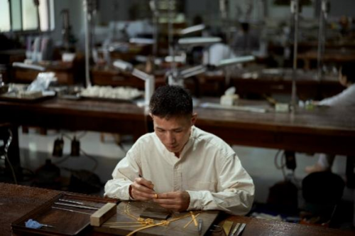 找尋、追溯,為保護中國的傳統(tǒng)非遺工藝,創(chuàng)始人遍尋中國各地臻寶首飾,花費近20年時間籌備、興建潮宏基臻寶首飾博物館,館藏超過3000件臻品。在眾多首飾臻寶中,非遺花絲鑲嵌,其工藝之精湛,讓創(chuàng)始人為之著迷。這項傳承久遠的中國傳統(tǒng)手工技藝,是“花絲”和“鑲嵌”兩種制作技藝的結(jié)合,也是燕京八絕里最繁復(fù)的貴金屬手工技藝,于2008年被納入國家級非物質(zhì)文化遺產(chǎn),卻一度瀕臨失傳。為了讓傳統(tǒng)文化新生,2009年,潮宏基創(chuàng)立“花絲鑲嵌工作室”,邀請名師出山授徒,先后培養(yǎng)了近百位年輕花絲工匠,竭力維護傳承非遺花絲工藝。