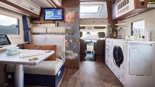 房車讓人們真正做到了行在路上、住在路上,說走就走、說停就停,能夠充分感受到旅行生活的豐富樂趣。而上汽大通MAXUS生活家V100房車就讓這種“生活”更為愜意舒適。其車內(nèi)擁有豐富的配置,雙開門車載大冰箱、微波爐、即熱飲水機(jī)、洗衣機(jī)、乳膠復(fù)合床墊等應(yīng)有盡有,并對(duì)功能區(qū)進(jìn)行了清晰地劃分,會(huì)客廳、廚房、臥室、衛(wèi)生間等十分明確,就是理想中的“移動(dòng)的家”。